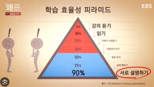 그래서 내 머리속에 있는 자바의 지식도 정리하고 타인에게 말하면서 면접연습을 하기 위해 스터디를 신청했다. 학습 효율성 피라미드를 보면 서로 설명해주면서 학습하는 것이 효과가 좋다는 것을 알 수 있다.