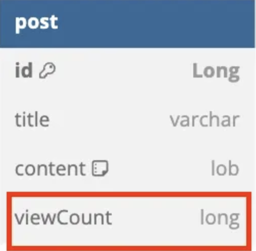 간단한 게시글 프로젝트에서 post테이블에 viewCount칼럼을 추가하는 예시를 통해서 확인해보자.