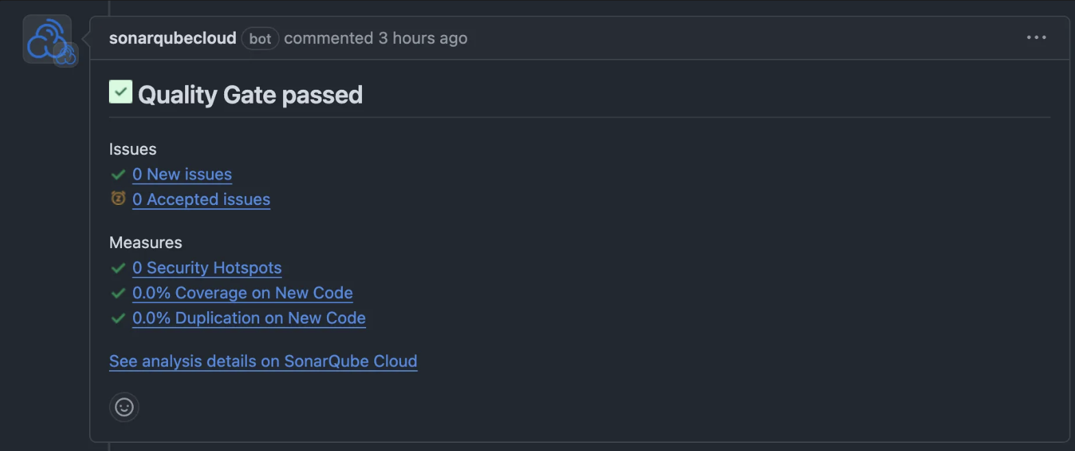 main branch로 PR이 열렸을때 sonar cloud 에 코멘트가 달리는지 확인.