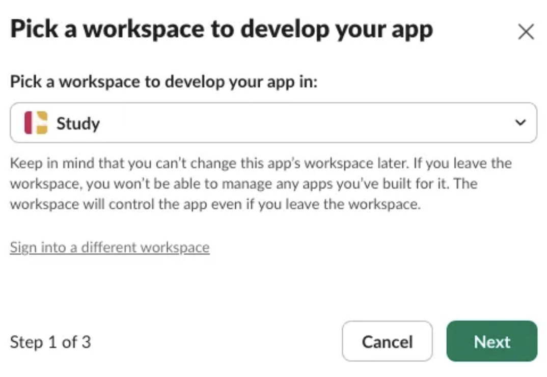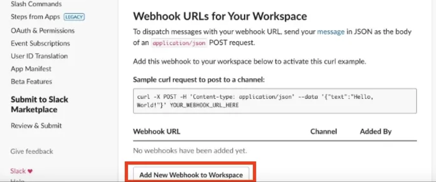 Add New Webhook to Workspace 를 클릭하여 방금 만든 워크스페이스를 액세스 하기 위한 권한을 설정해준다.