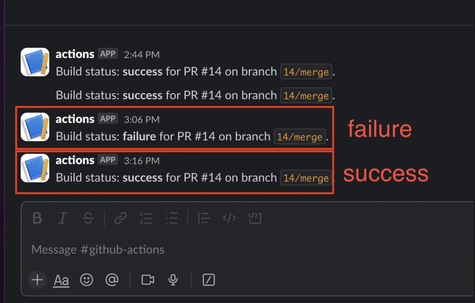 Slack을 사용하는 이유는 Github actions이 Slack으로 메세지를 보내기 위해 아래와 같은 과정을 해준다.
