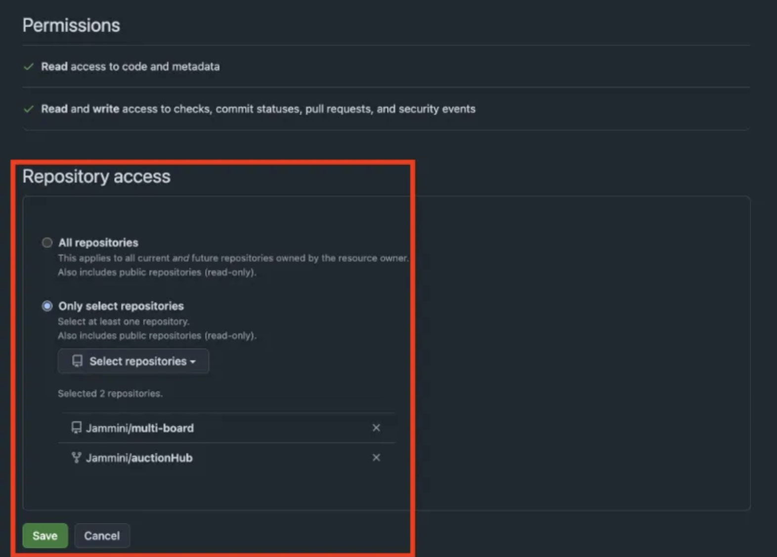 Select repositories 를 통해 해당 프로젝트를 추가하고 Save 해준다.