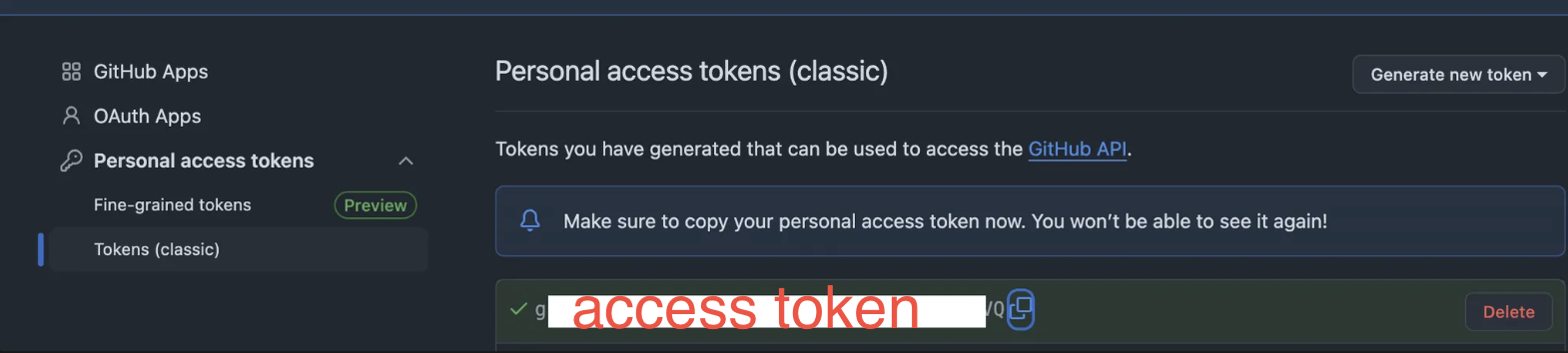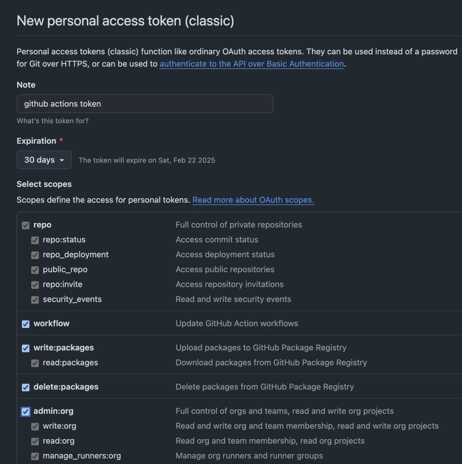 이후에 Github actions 가 사용할 Github 권한을 이 Token을 이용해서 받아오게 된다.