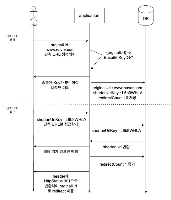 또한, 원래의 URL로 다시 단축 URL을 생성해도 항상 새로운 단축 URL이 생성되어야 하며 기존에 생성되었던 단축 URL도 여전히 동작되어야 한다.
