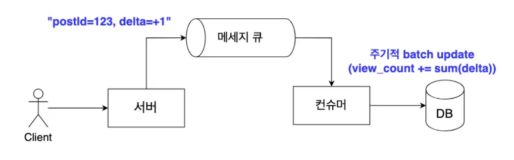 - 컨슈머가 모아서 DB 반영 (UPDATE ... SET view_count = view_count + n)