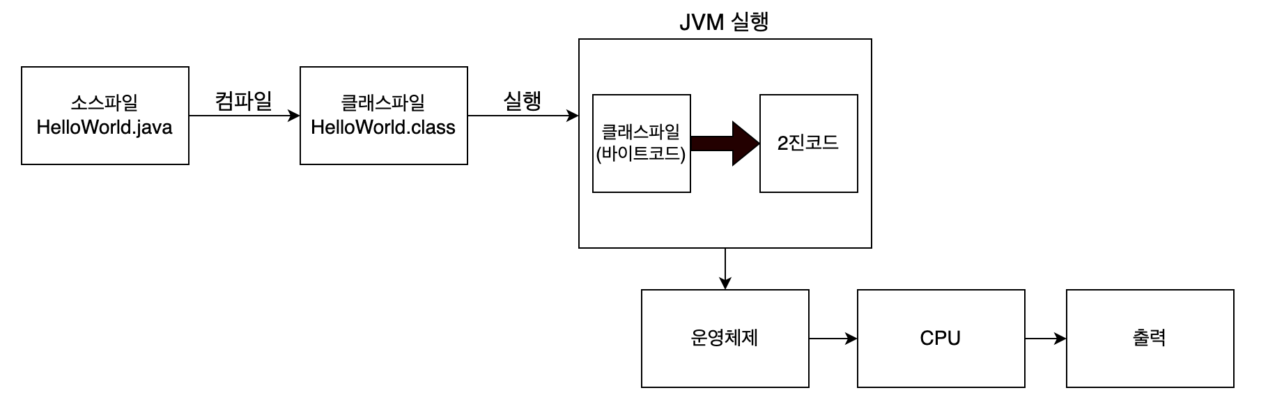 - JVM이 클래스의 바이트코드를 운영체제에서 실행 할 수 있는 2진코드로 변경한다.
