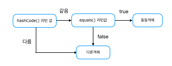 hash 값을 사용하는 객체가 논리적으로 같은지 비교할 때 아래 그림과 같은 과정을 거친다.