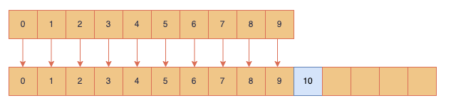 }- 기본 list가 10개 가득 차있고 10을 추가한다고 가정해보자.