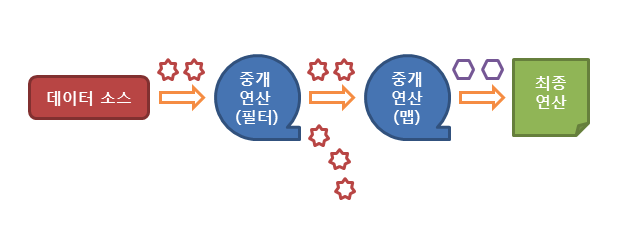 - 0 또는 다수의 중개 연산과 한개의 종료 오퍼레이션으로 구성한다.