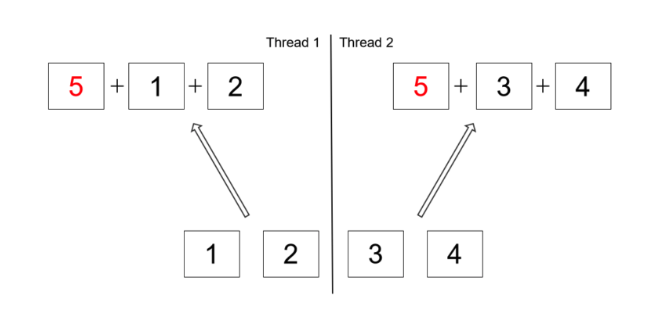 - 이를 해결하려면 아래와 같이 병렬작업이 끝난 후 +5를 연산해주어야 한다.