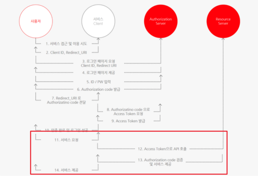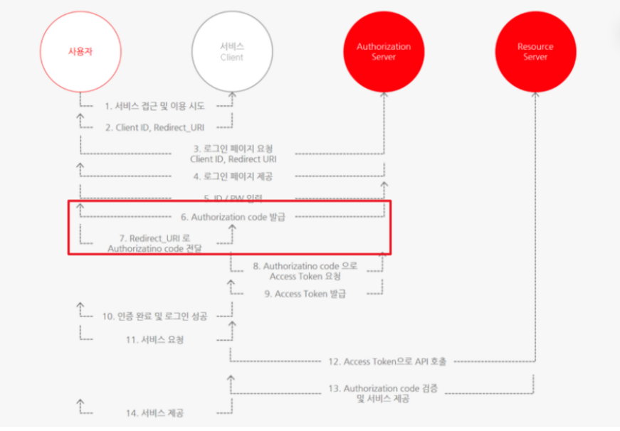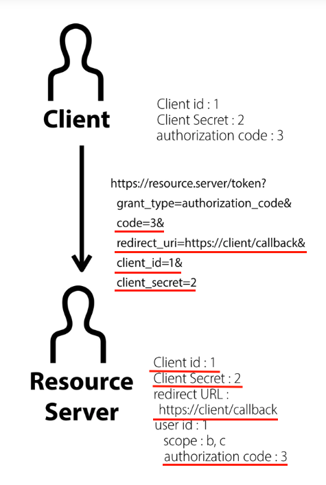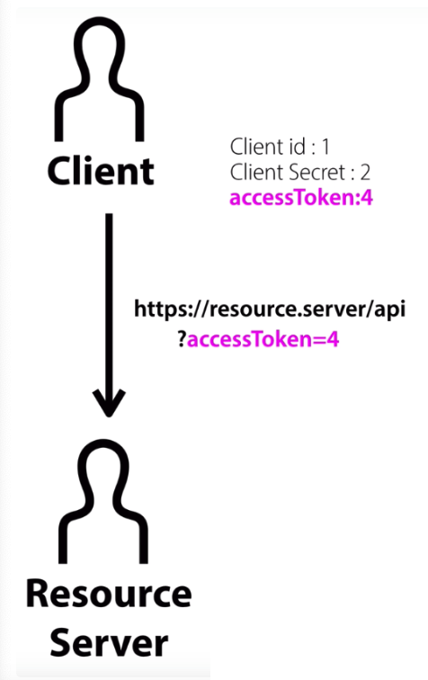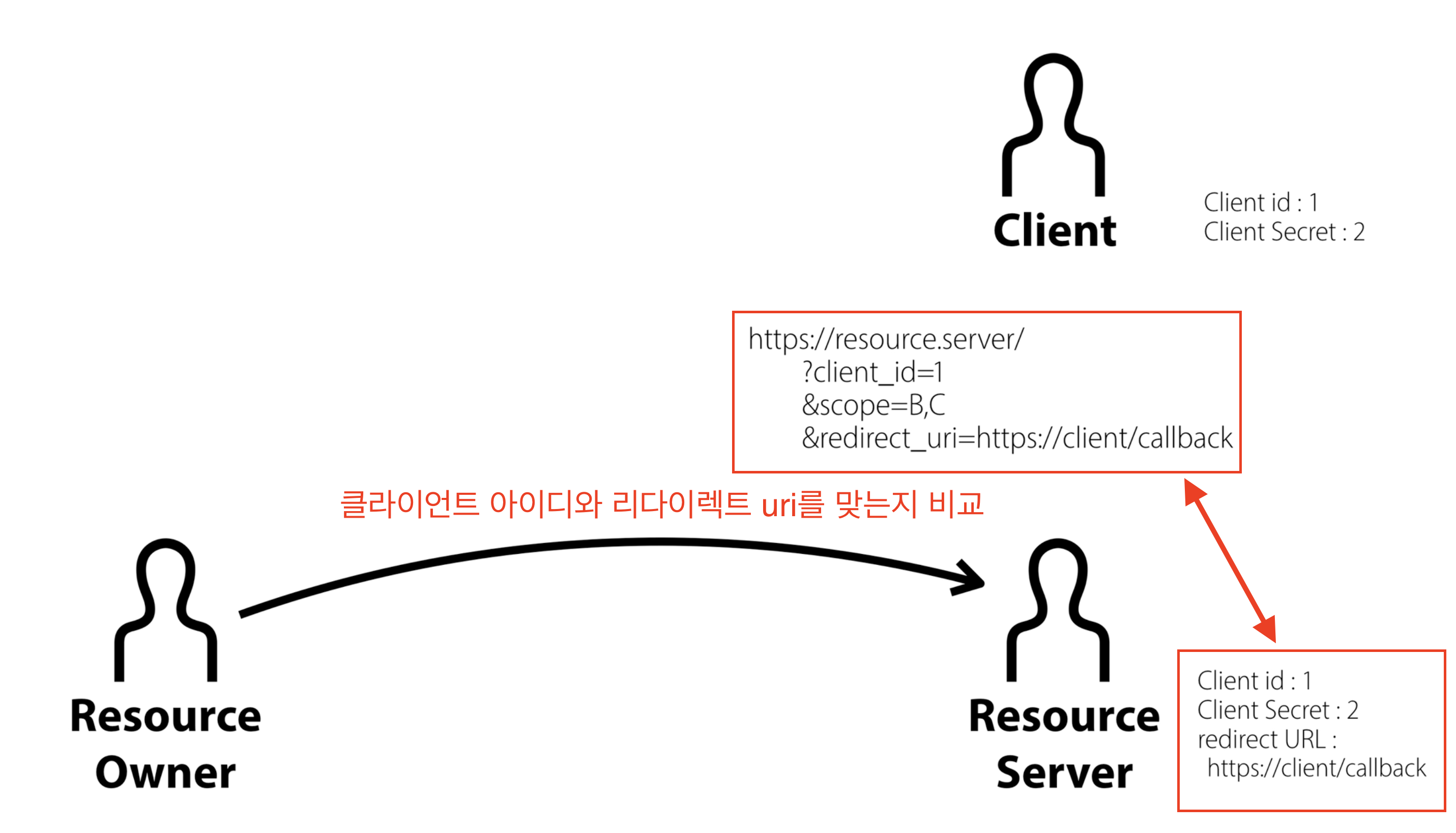 - 이제 Client가 Resource Server에게 직접 url(클라이언트 아이디, 비번, 인증코드 등)을 보낸다.