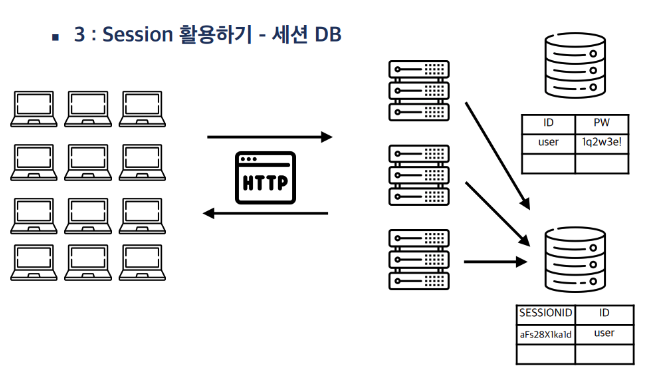 - 위 문제점을 피하기 위해, 세션ID는 각각의 서버에서 개별적으로 관리하는 정보이기에 세션만을 관리하는 세션 스토리지 서버가 따로 필요하다.