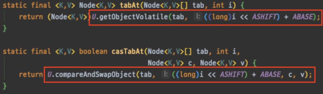 CAS 구현은 java.util.concurrent.atomic 패키지의Atomic* 클래스들과 동일하게 내부적으로 sun.misc.Unsafe을 사용하고있다. (Unsafe 는 jdk11 부터 없어 졌다고 한다.)