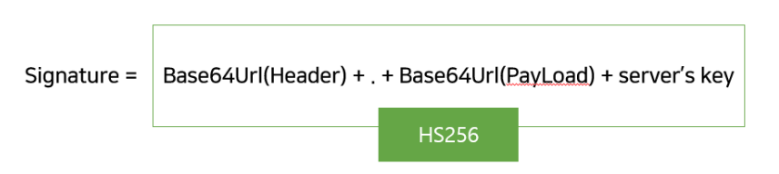 시그니처의 구조는 (헤더 + 페이로드)와 서버가 갖고 있는 유일한 key 값을 합친 것을 헤더에서 정의한 알고리즘으로 암호화를 한다.