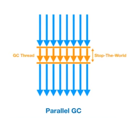 - Serial GC와 기본적인 알고리즘은 같지만 Serial GC는 GC를 처리하는 스레드가 하나인 것에 비해, Parallel GC는 GC를 처리하는 쓰레드가 여러개이다. 다. 그렇기 때문에 Serial GC보다 빠르게 객체를 처리할 수 있다.