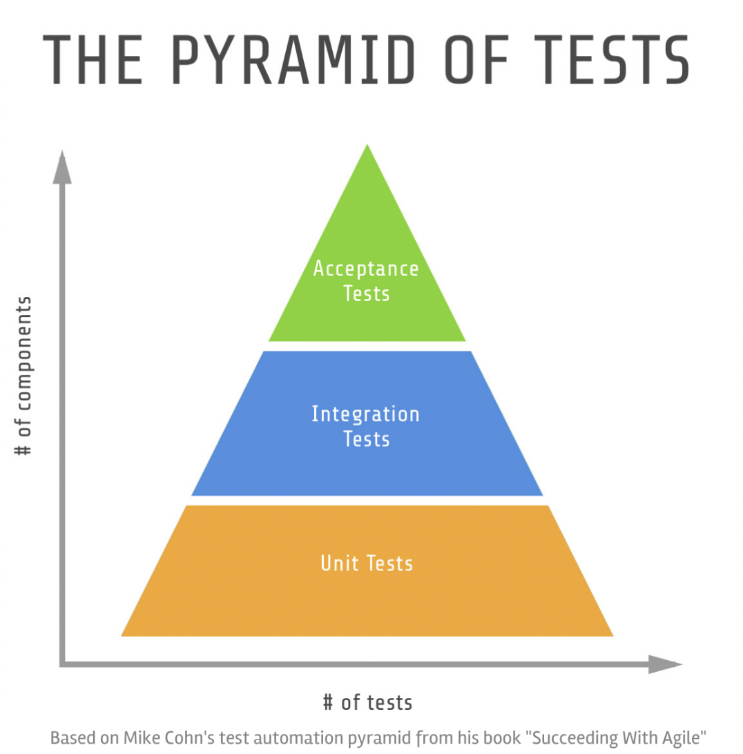 테스트를 크게 3가지 분류로 나눌 수 있는데 가장 많은 범위를 차지 하고 있는 단위 테스트 통합 테스트, 인수 테스트 순으로 위 그림 처럼 나타낼 수 있다.