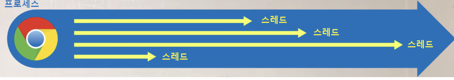 크롬 브라우저를 실행시키면 프로세스 하나를 실행시키는 것과 같고 크롬을 이용해 우리는 음악도 듣고 파일도 다운 받으며 웹검색을 한다.