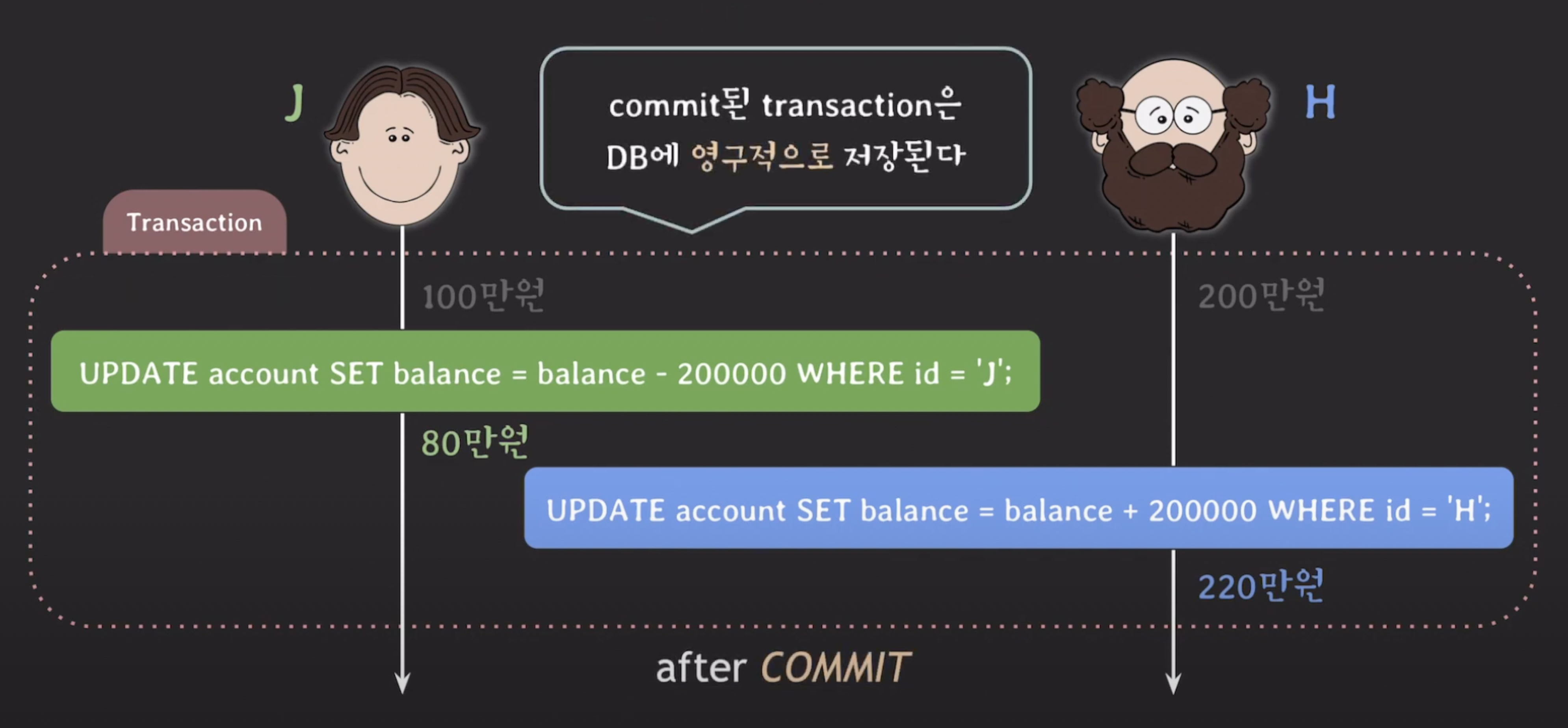 - commit 실행 시 DB에 영구적으로 저장하는 것.