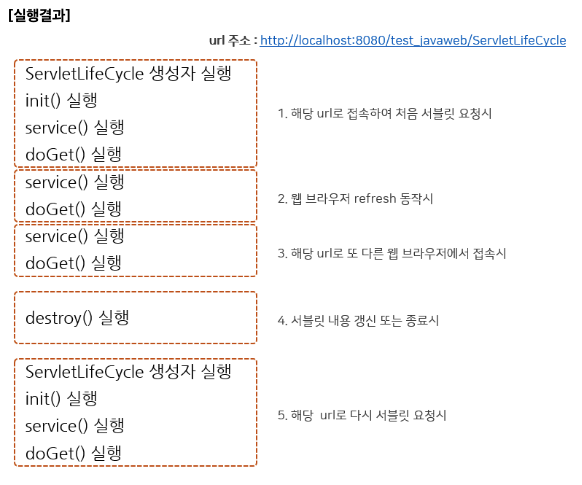 3. WAS가 종료되거나 웹 어플리케이션이 갱신되어 서블릿 종료 요청이 있을 경우 destroy() 메소드를 실행한다.