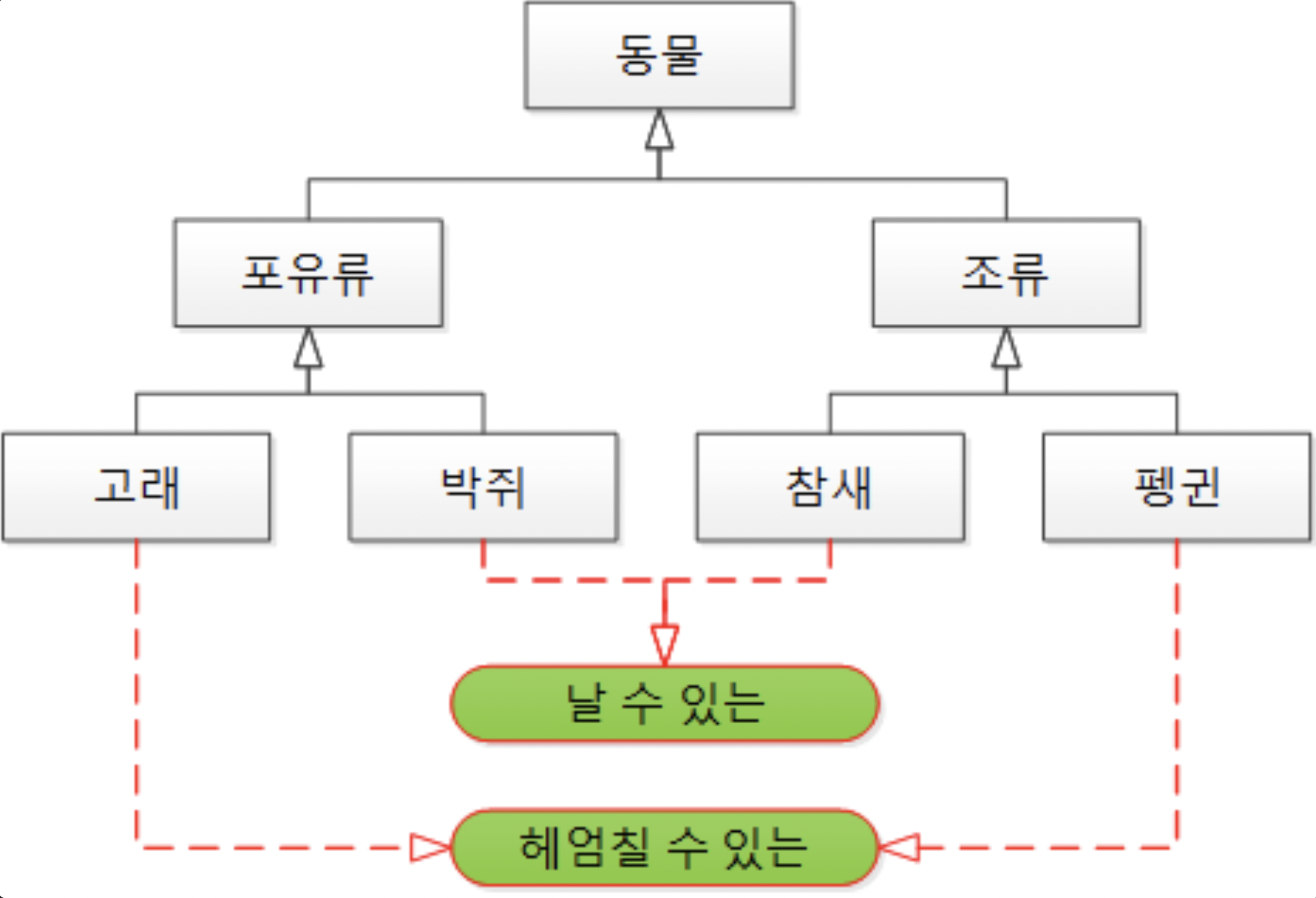 - 하위 클래스 is a kind of 상위 클래스