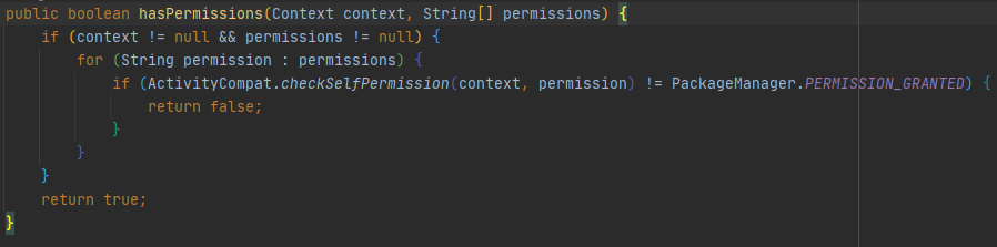 권한 허용을 하나라도 하지 않는다면 false를 리턴합니다.