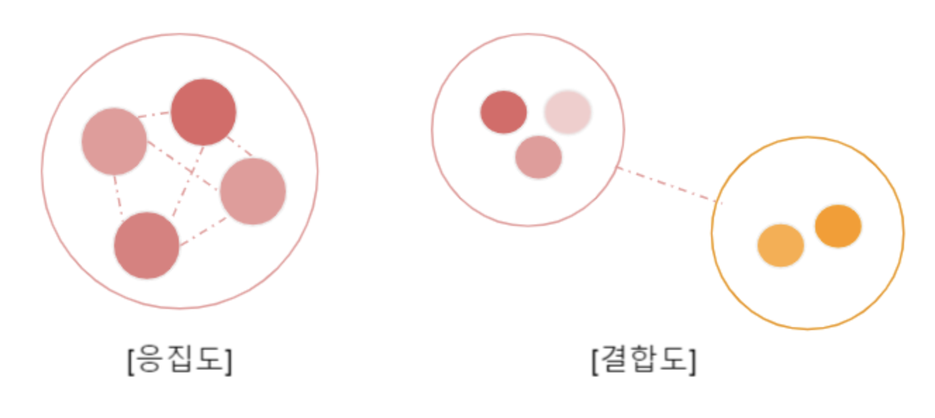 결합도는 모듈과 모듈 간의 의존 정도를 의미하고, 응집도는 한 모듈 내의 구성요소들 간의 연관 정도를 의미한다.