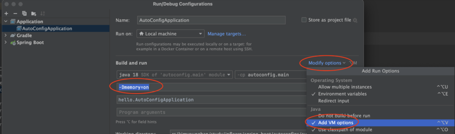 Condition 인터페이스를 구현해서 다음과 같이 자바 시스템 속성이 memory=on 이라고 되어 있을 때만 메모리 기능이 동작하도록 만들어보자.